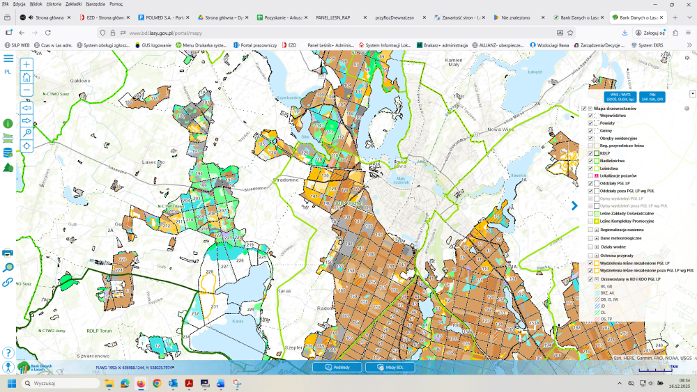 W ramach portalu BDL funkcjonuje również system automatycznego pobierania danych o aktualnych wydzieleniach leśnych w zarządzie poszczególnych nadleśnictw PGL LP.